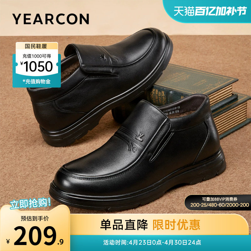 意尔康皮鞋男秋冬真皮正品商务休闲棉鞋男软皮软底透气大码爸爸鞋