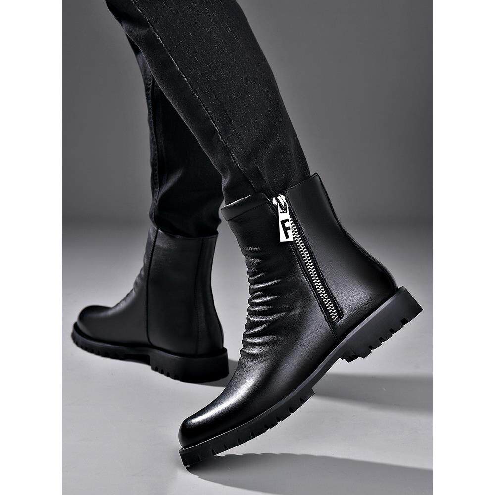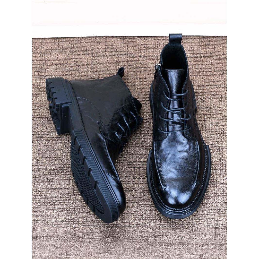 秋冬时尚头层牛皮马丁靴高帮休闲皮鞋男中帮真皮黑色短靴加绒棉鞋