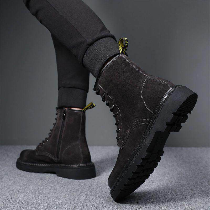 马丁靴男真皮休闲皮鞋秋冬百搭系带英伦加绒保暖棉鞋耐磨高帮男靴