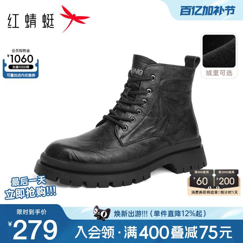 红蜻蜓男鞋冬季新款男士高帮棉鞋商务皮靴休闲皮鞋真皮马丁靴男款