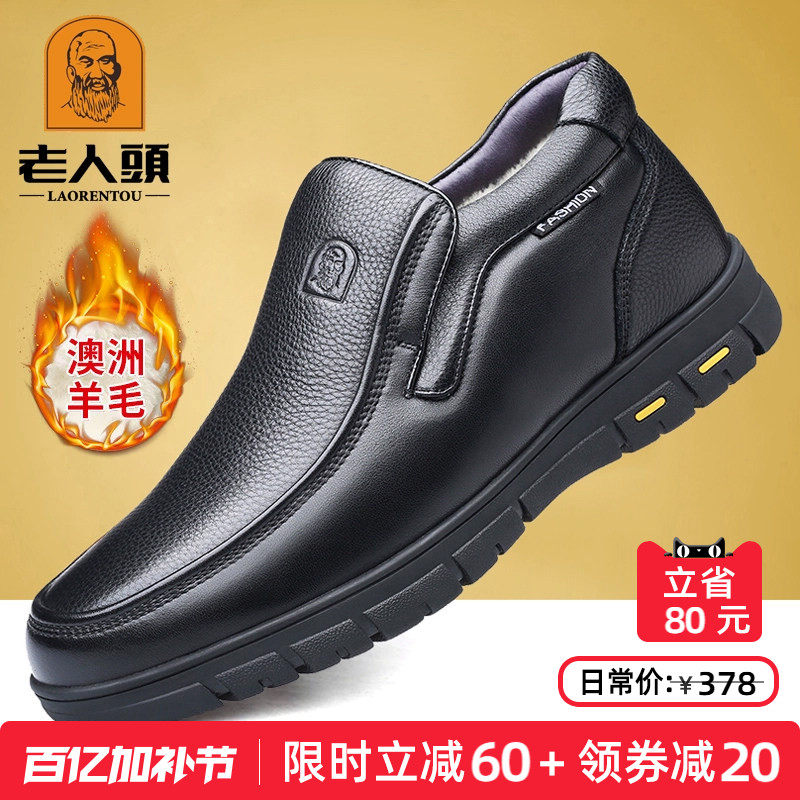 老人头皮鞋男冬季高帮棉鞋男羊毛保暖休闲鞋真皮中老年爸爸鞋加绒