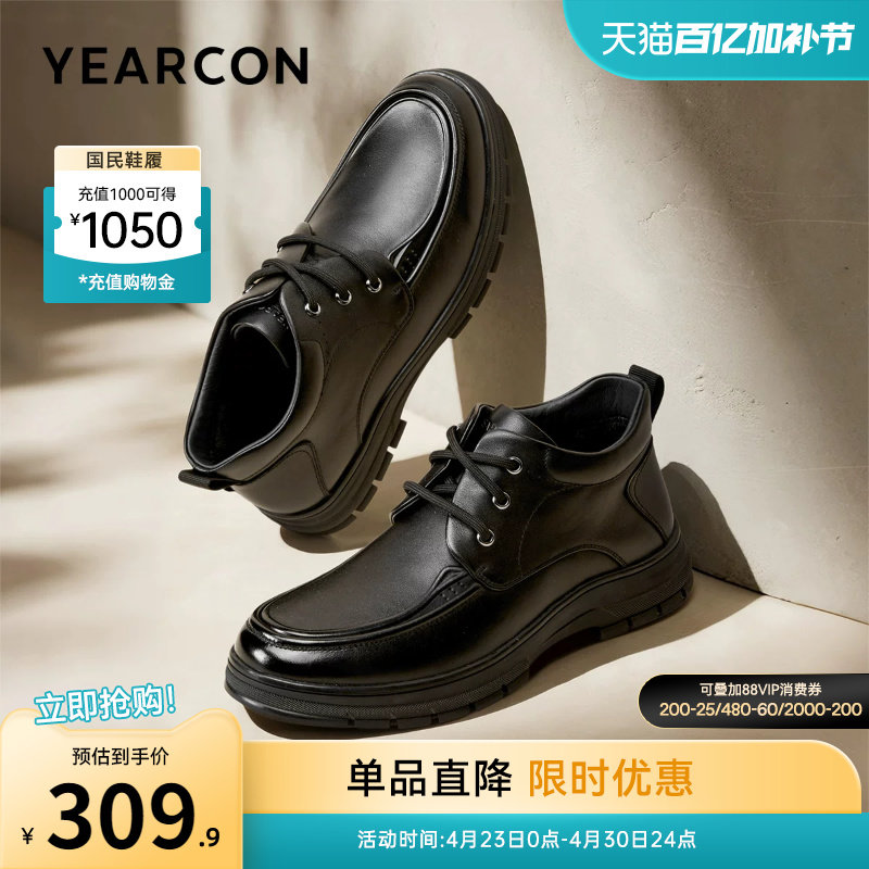 意尔康皮鞋男士真皮商务正装皮鞋秋冬棉鞋加绒保暖内增高结婚鞋潮