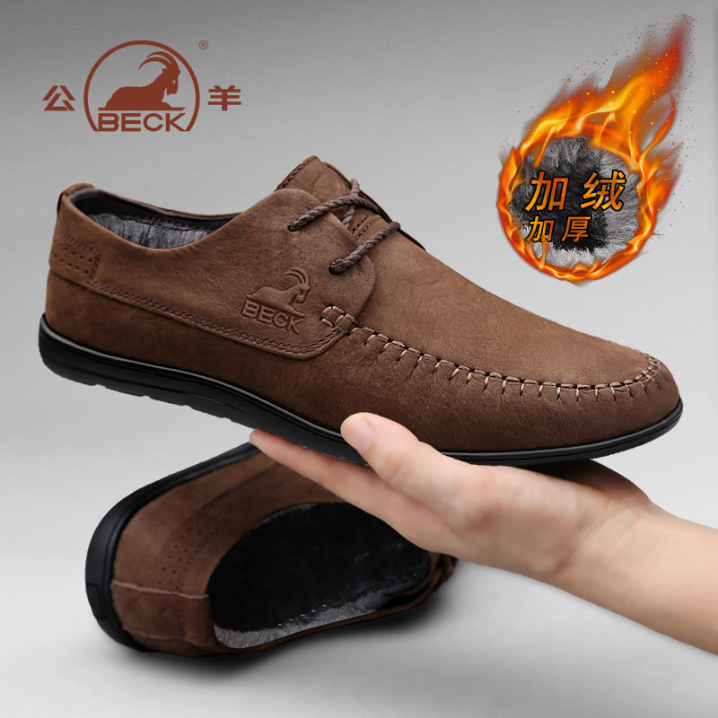 公羊皮鞋男款2026新款男士休闲皮鞋冬季加绒保暖棉鞋男真皮爸爸鞋