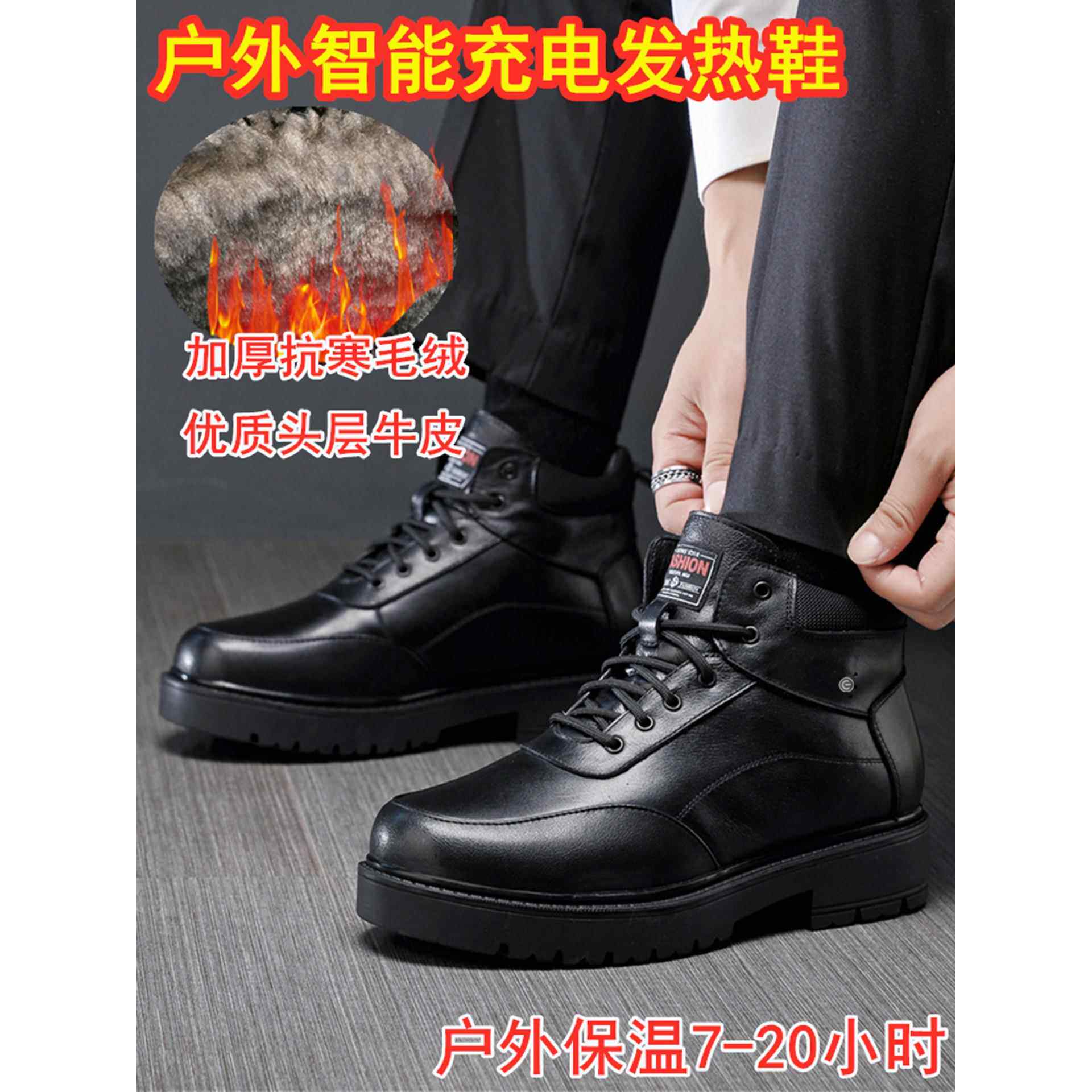 充电加热保暖电热棉鞋加绒休闲高帮真皮雪地靴暖脚爸爸发热皮鞋男