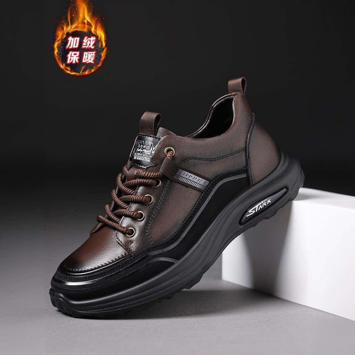 棉鞋男士冬季时尚真皮加绒皮鞋保暖软底休闲鞋百搭轻便复古运动鞋