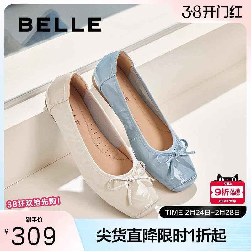 百丽气质平跟单鞋女春季新款商场同款真皮舒适浅口单鞋B3W2DAQ5