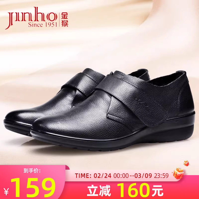 金猴春季魔术贴女鞋休闲妈妈鞋中老年软底防滑牛皮平跟平底女单鞋