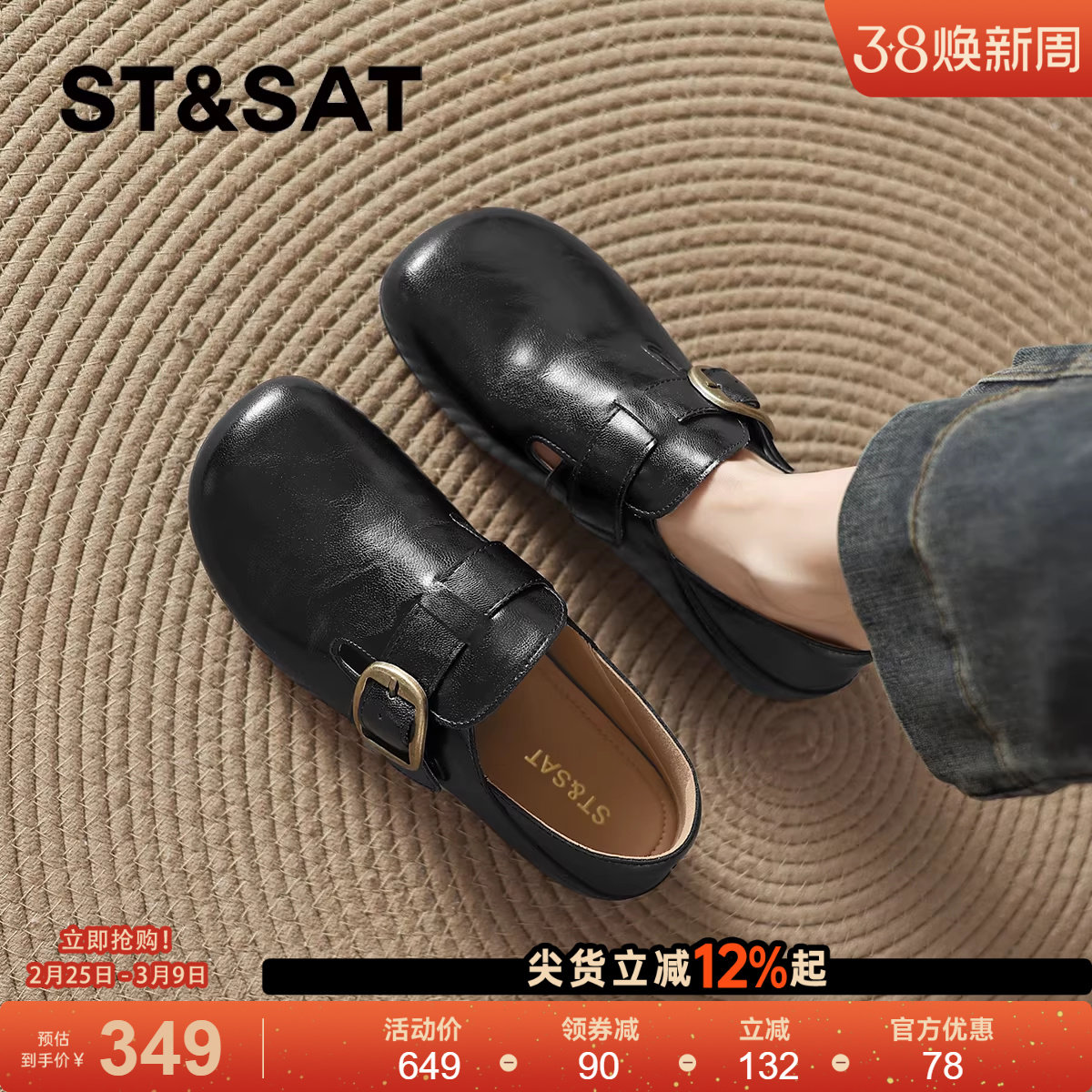 星期六2025春季新款方扣真皮水钻浅口单鞋平跟通勤女鞋SSD1111027