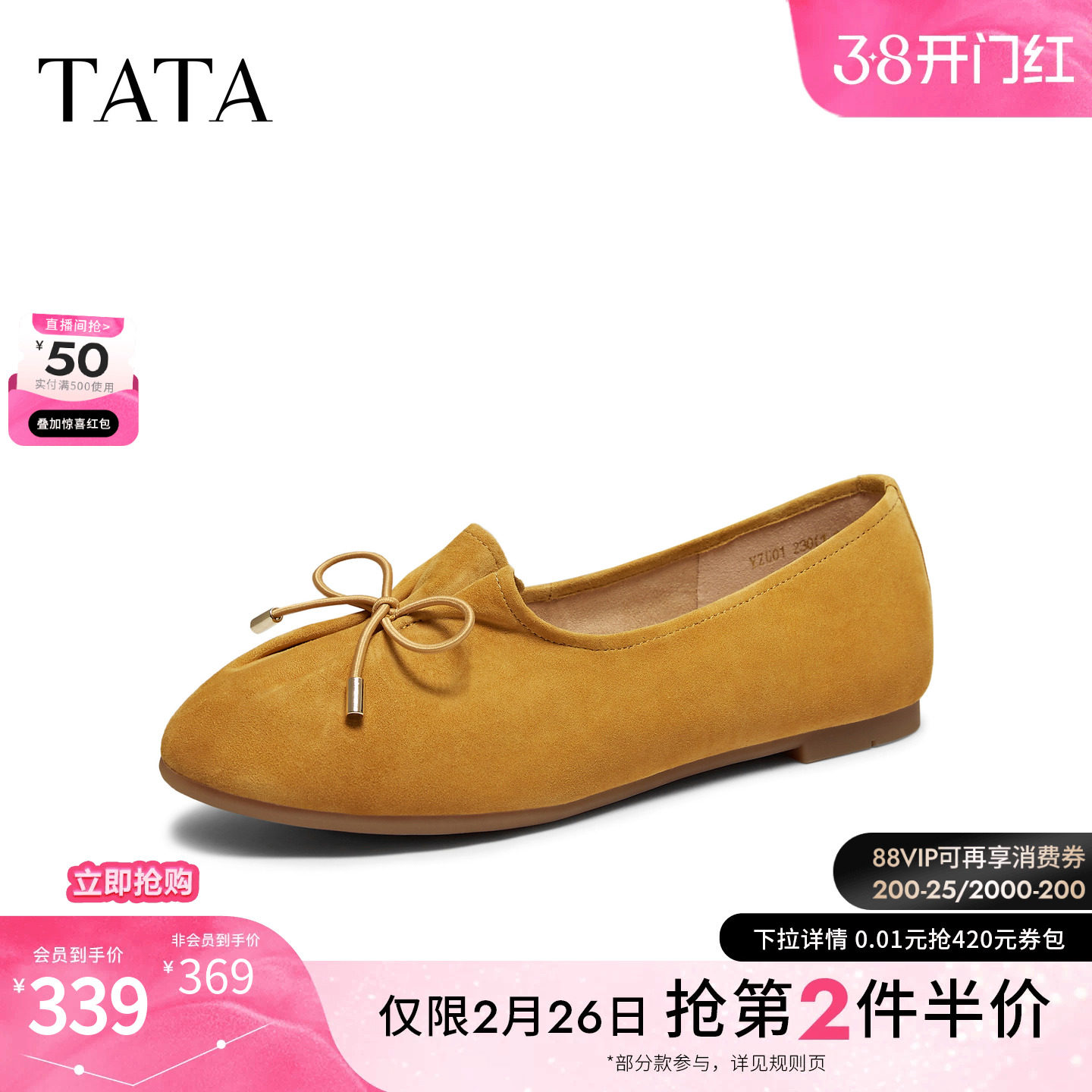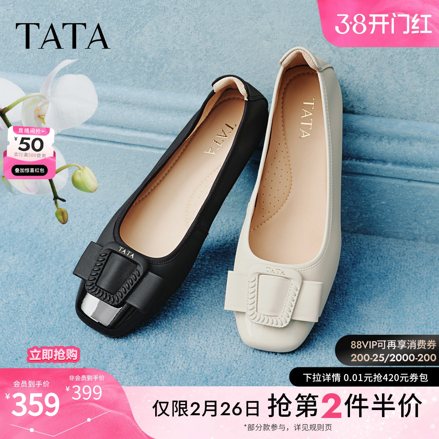 TATA他她女鞋2026春季新款时尚百搭羊皮浅口鞋低平跟单鞋UUD02AQ6