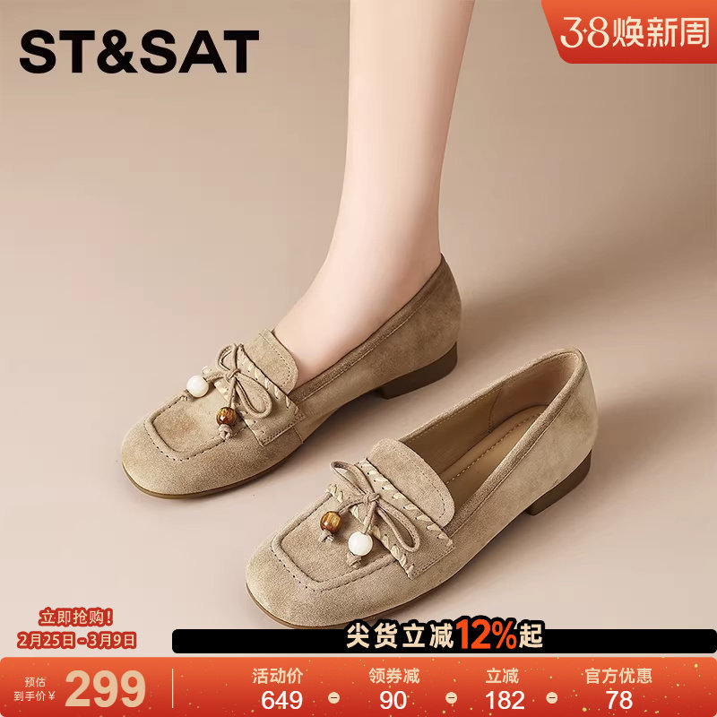 星期六法式蝴蝶结流苏麂皮乐福鞋女2025新款软底豆豆鞋平跟单鞋子