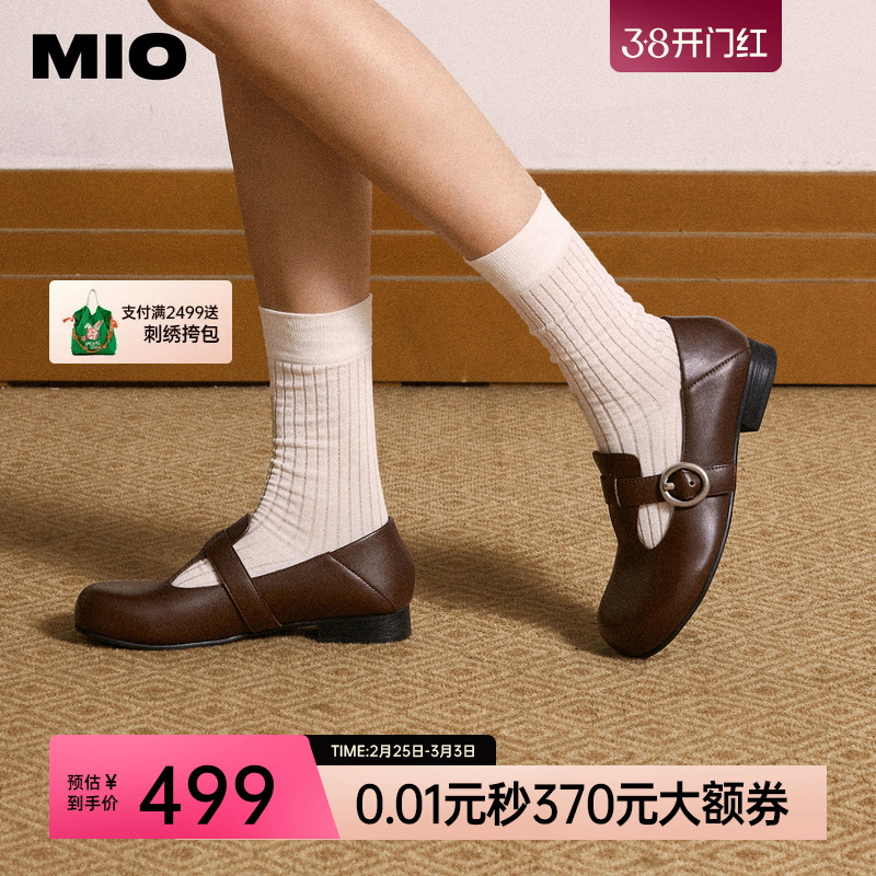 MIO米奥复古玛丽珍鞋秋季T字圆头平跟皮鞋百搭复古学院单鞋女