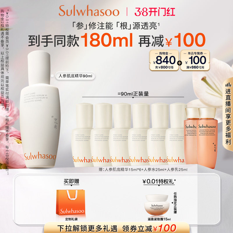 【自营】雪花秀润致焕活人参润燥精华保湿修护肌底液精华液15ml*2