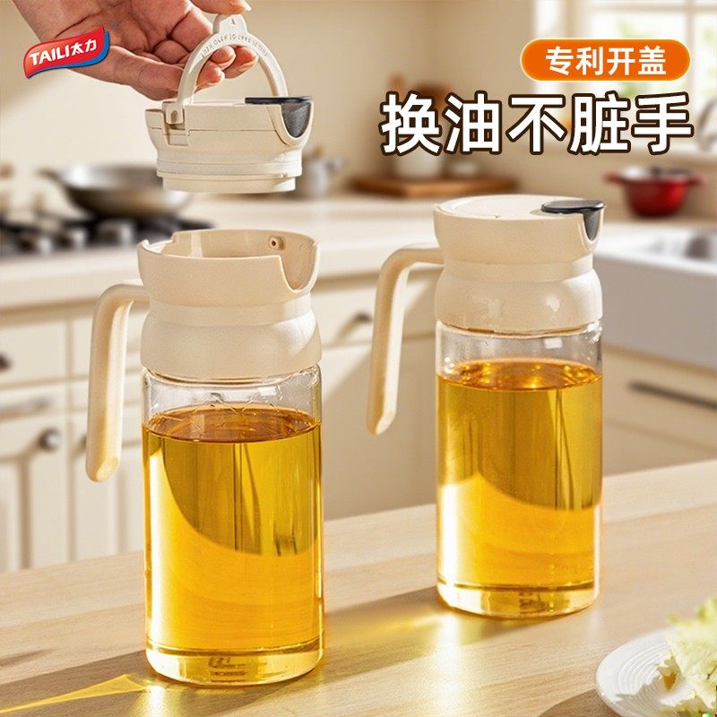 太力玻璃油壶厨房家用不挂油香油酱油醋调料瓶油罐壶自动开合油瓶