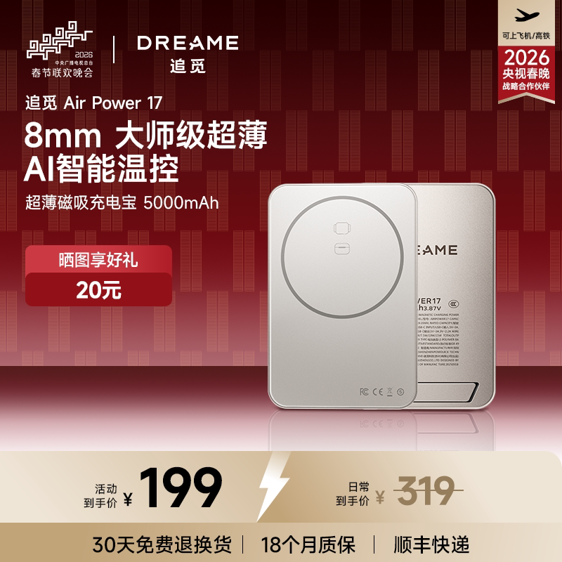 【重磅新品】追觅磁吸充电宝 3c认证可上飞机高铁 苹果安卓手机无线5000毫安大容量 超薄便携 智能家居
