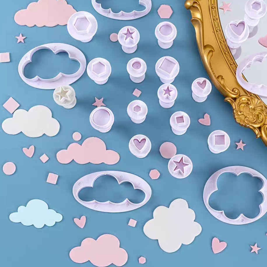 塑料切模生日蛋糕装饰插件雪花云朵爱心五角星饼干翻糖干佩斯压模