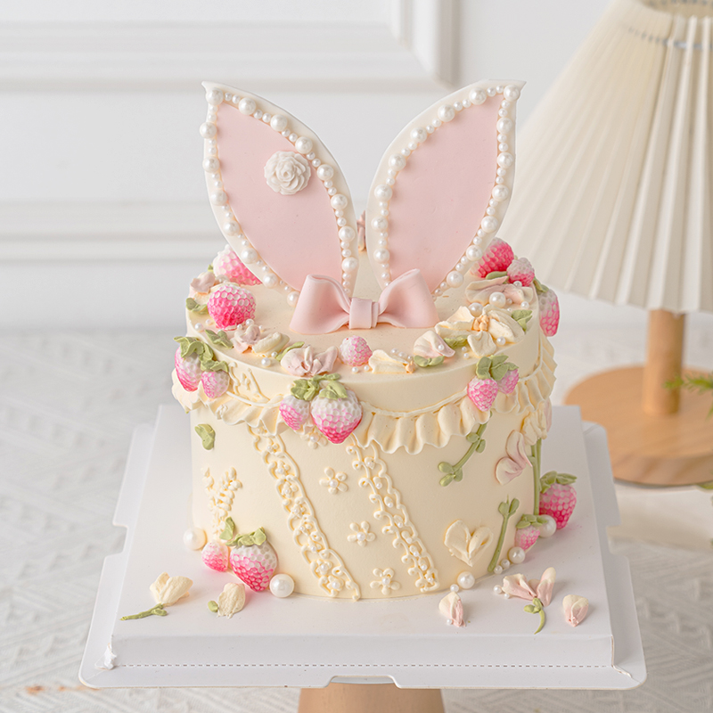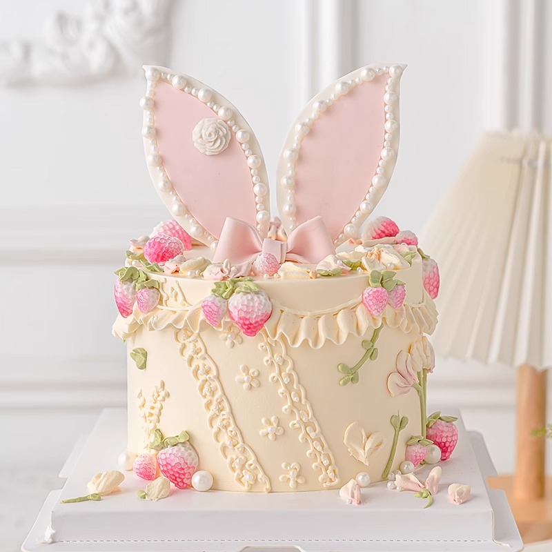 粉色少女心女生生日蛋糕装饰兔耳朵翻糖干佩斯蛋糕立体草莓硅胶模