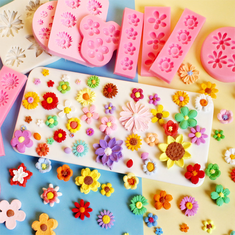 雏菊花朵树叶蝴蝶结巧克力模具翻糖干佩斯造型硅胶模蛋糕装饰摆件