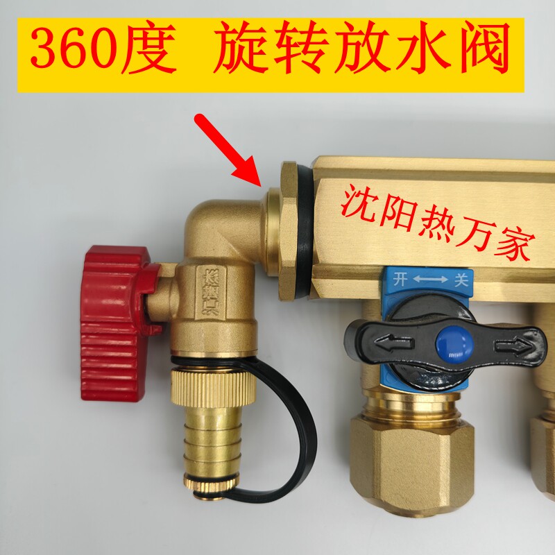 地热分水器放水阀暖气片排水阀360度旋转放水阀门全铜地暖排污阀