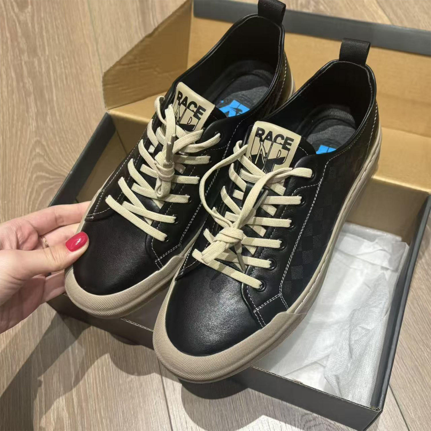 【H系】头层牛皮!男士百搭休闲系带真皮皮鞋橡胶防滑底时尚板鞋