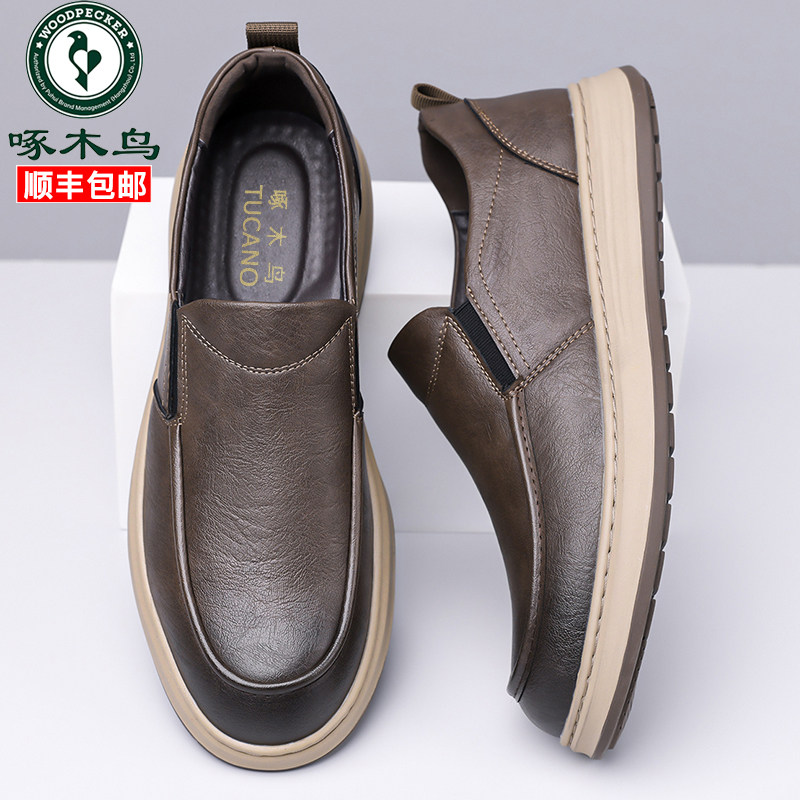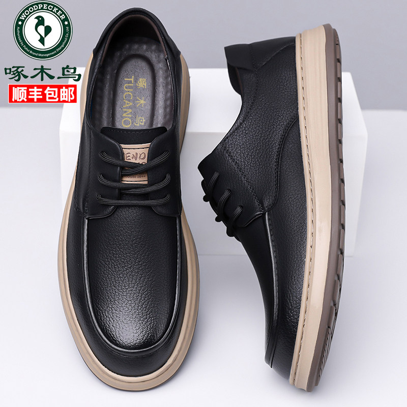 啄木鸟男鞋春秋休闲皮鞋圆头系带软底商务休闲百搭潮流防滑板鞋男