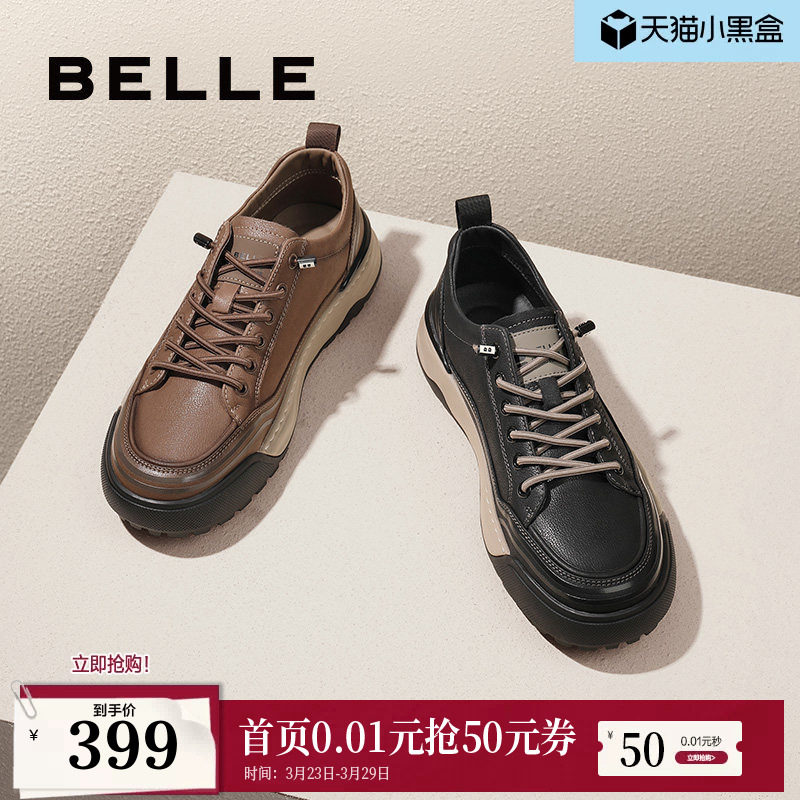 百丽男鞋免系带复古休闲鞋子春季板鞋运动鞋男士工装皮鞋8EY01AM4