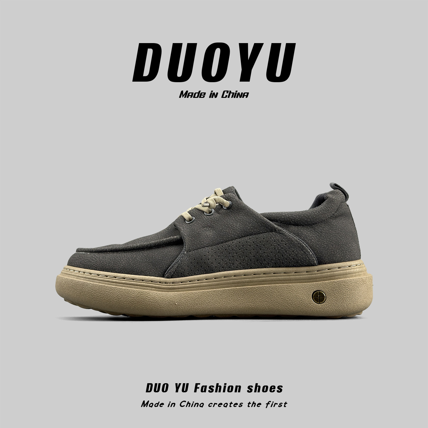 骆域熙真皮男士休闲鞋板鞋反绒皮休闲皮鞋英伦系带伐木鞋男鞋子潮