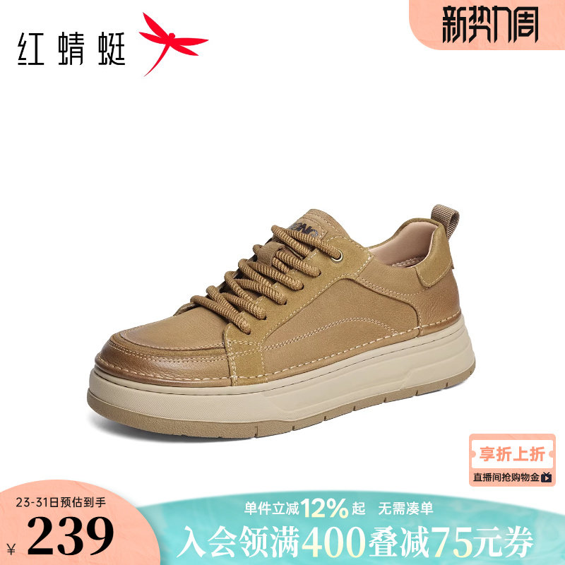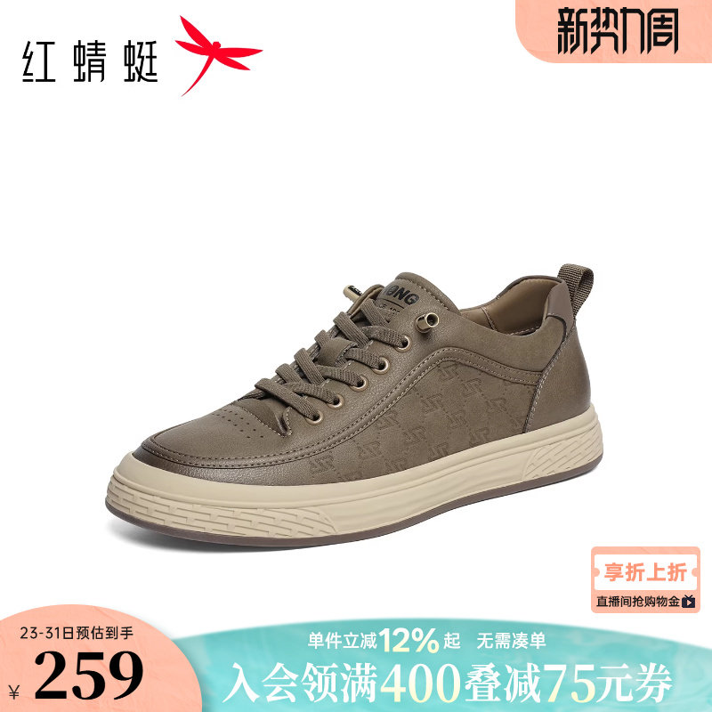 红蜻蜓休闲板鞋春秋新款男鞋运动休闲皮鞋平底系带百搭工装运动鞋