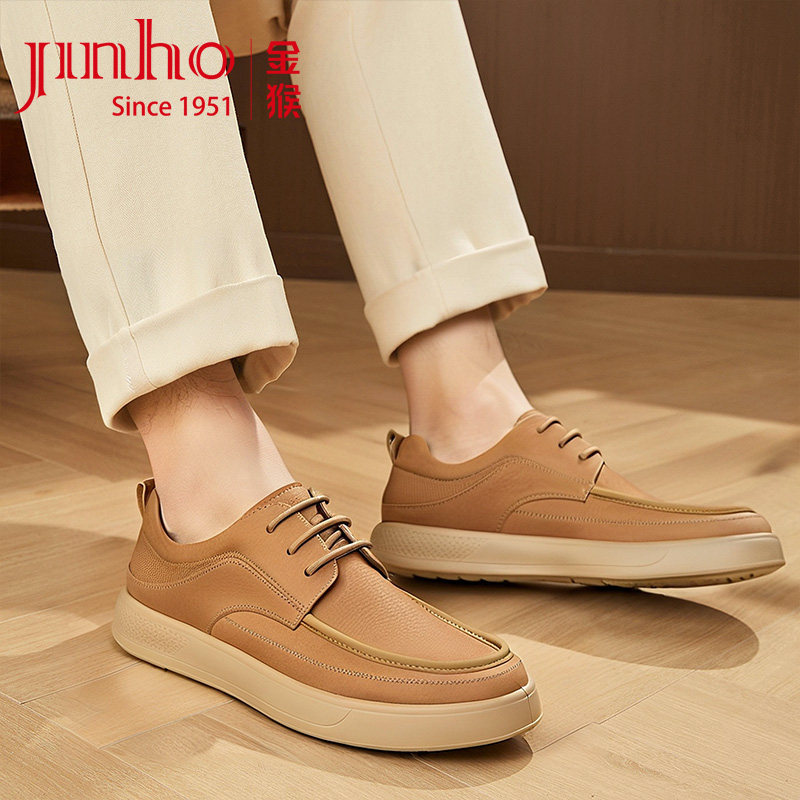 金猴男鞋休闲皮鞋2025年新款秋冬季系带轻便厚底男士板鞋袋鼠鞋男