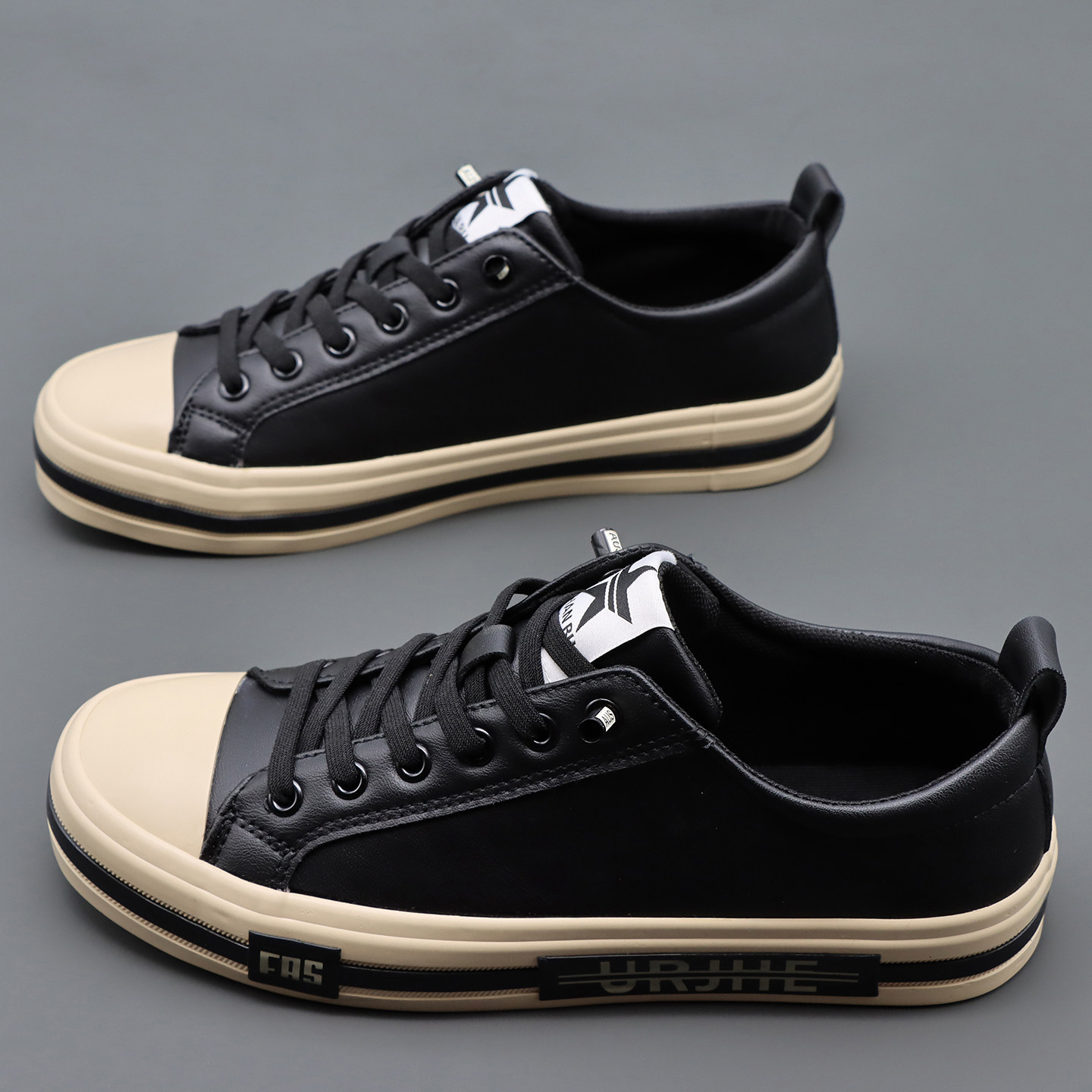 男鞋秋季新款系带皮面男士板鞋低帮百搭休闲皮鞋男款潮流休闲鞋子