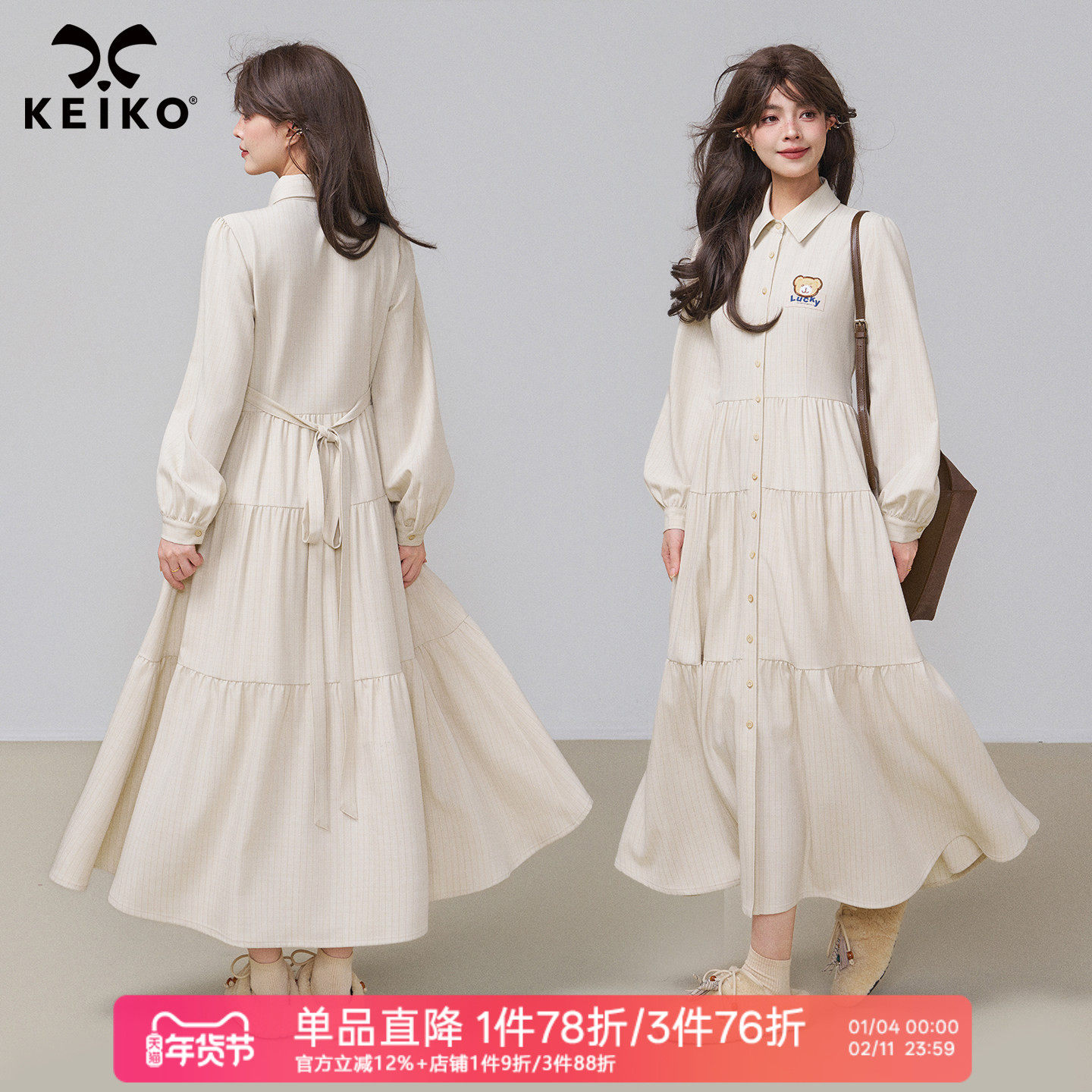 KEIKO 古典灯笼长袖衬衫连衣裙26春季错序叠穿收腰显瘦A字长裙子