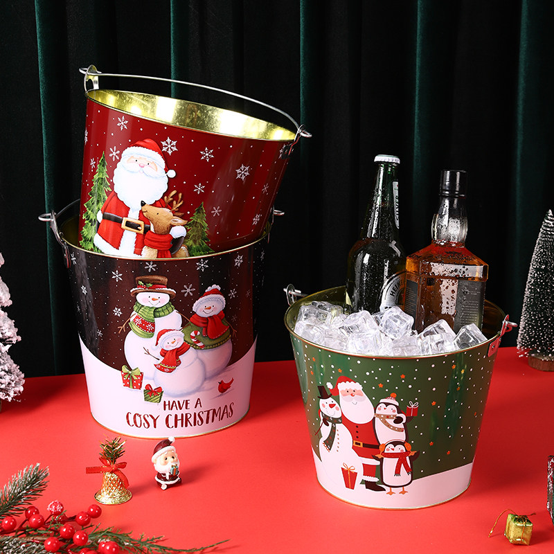 2025新款圣诞手提冰桶家用户外铁艺收纳桶创意酒吧KTV香槟红酒桶