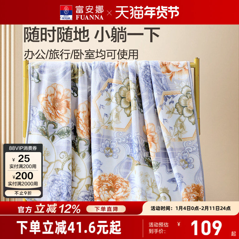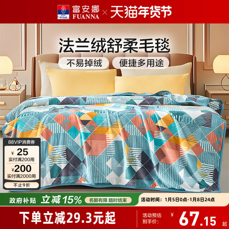 富安娜家纺春秋季毛毯子法兰绒毯单双人沙发毯午休盖毯空调毯被子