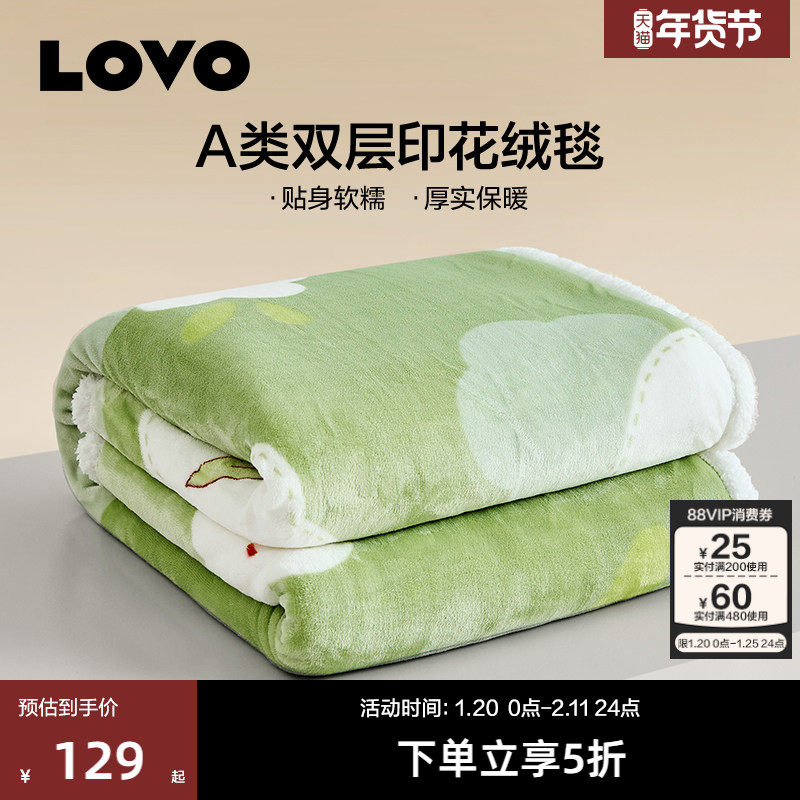罗莱生活LOVO乐蜗双层加厚毯法兰绒毯盖毯办公室午睡毯毛毯子秋冬