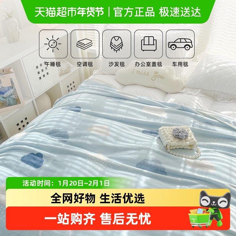 多喜爱家纺法兰绒毯双面绒毛毯宿舍空调毯办公室午休毯可水洗毯子