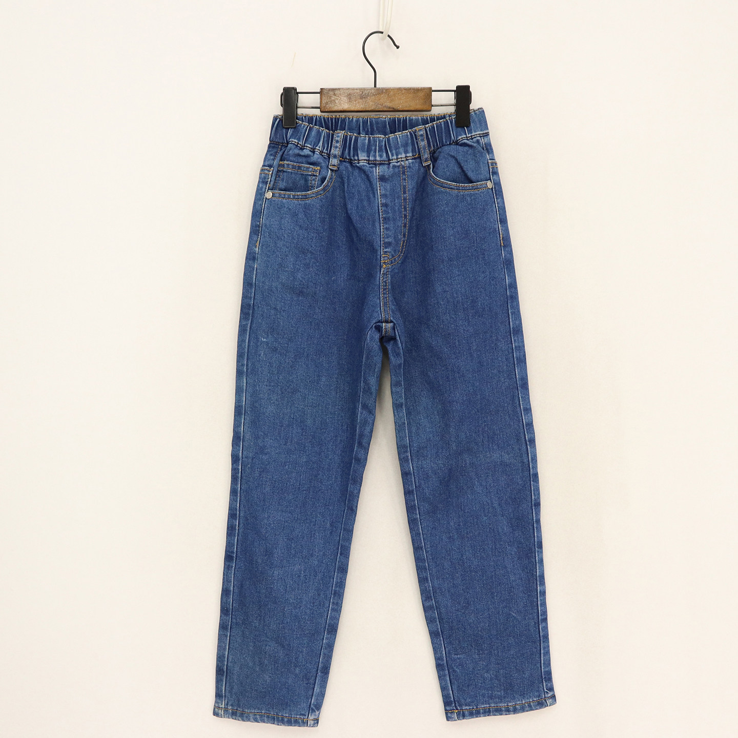 B秋冬款男女童装 中大童松紧腰黄线口袋保暖加绒直筒裤 D1M