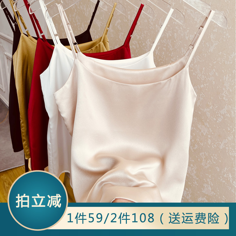 可调节肩带吊带背心女外穿夏季西装内搭打底白色缎面宽松薄款上衣