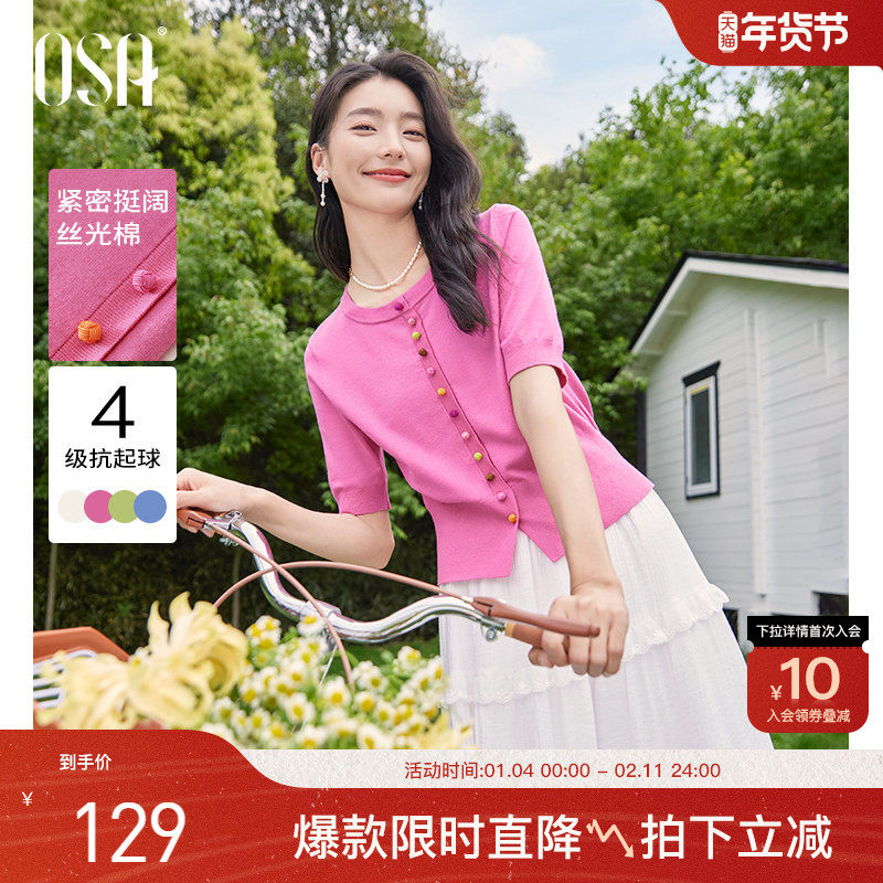 【糖果针织】OSA欧莎短袖针织衫女2025夏季新款清新减龄薄款上衣