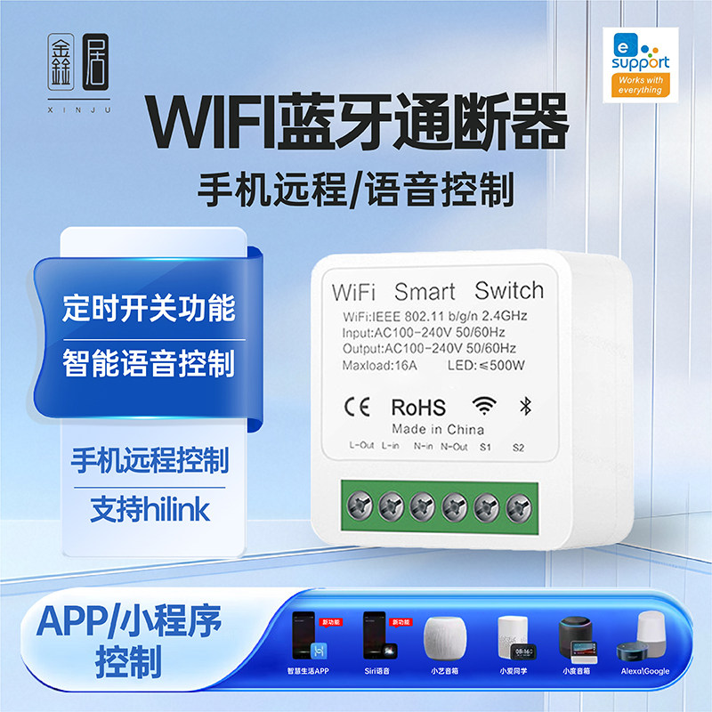 易微联智能mini双控16A通断器开关WiFi语音手机远程控制电源模块