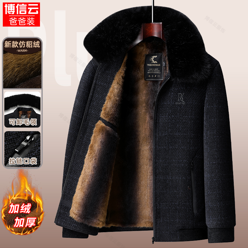 冬装新款加绒貂绒派克服加厚棉衣男士抗寒羽绒棉服爸爸中老年外套