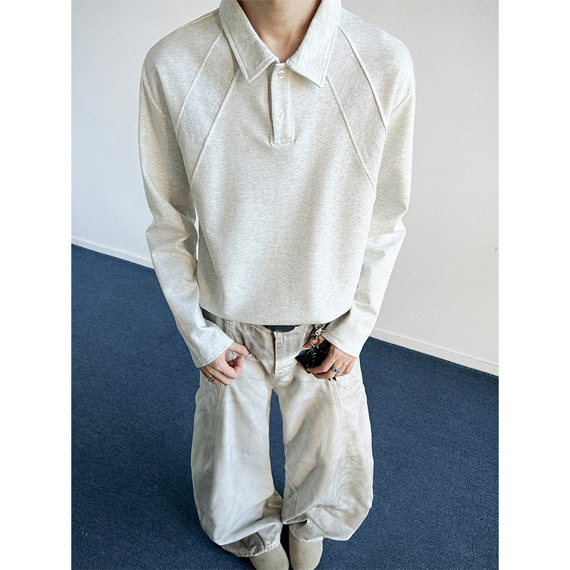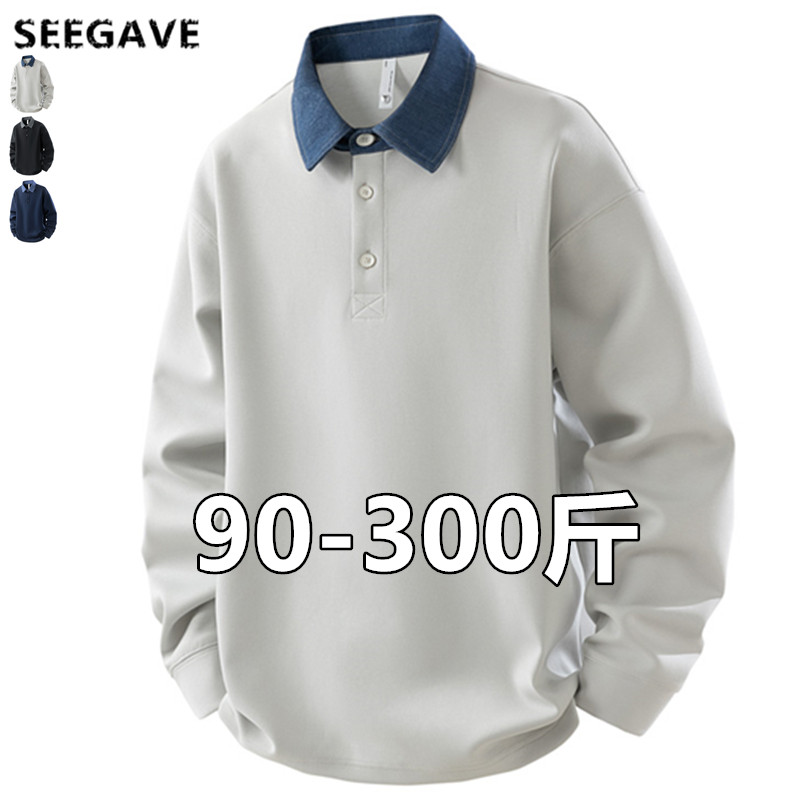 大码300斤美式polo衫男女款秋季解构翻领长袖t恤宽松重磅无帽卫衣