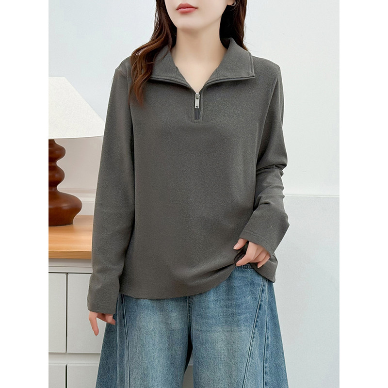 翠袖大码女装胖mm半拉链卫衣女款宽松显瘦长袖T恤打底衫保暖上衣