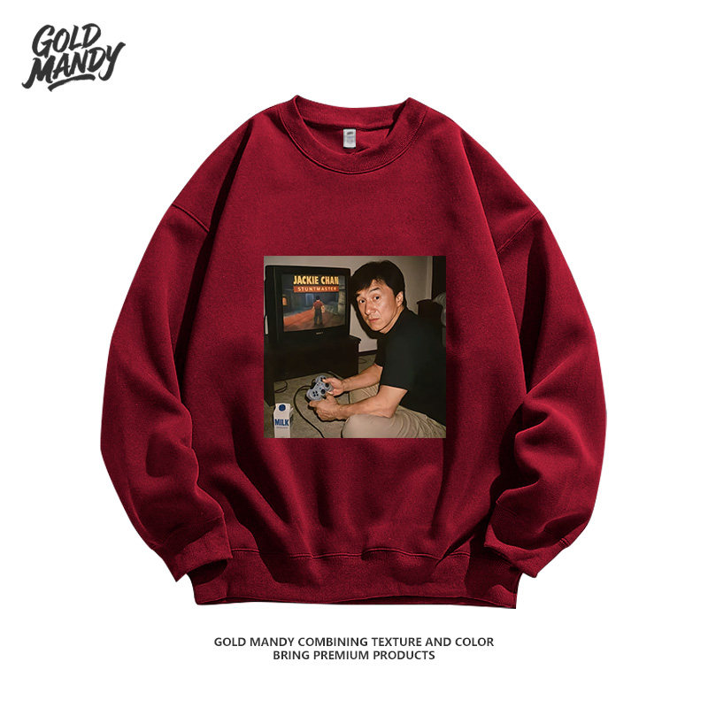 成龙叔历险记印花复古纯棉秋季长袖T恤衫圆领卫衣宽松休闲男女款
