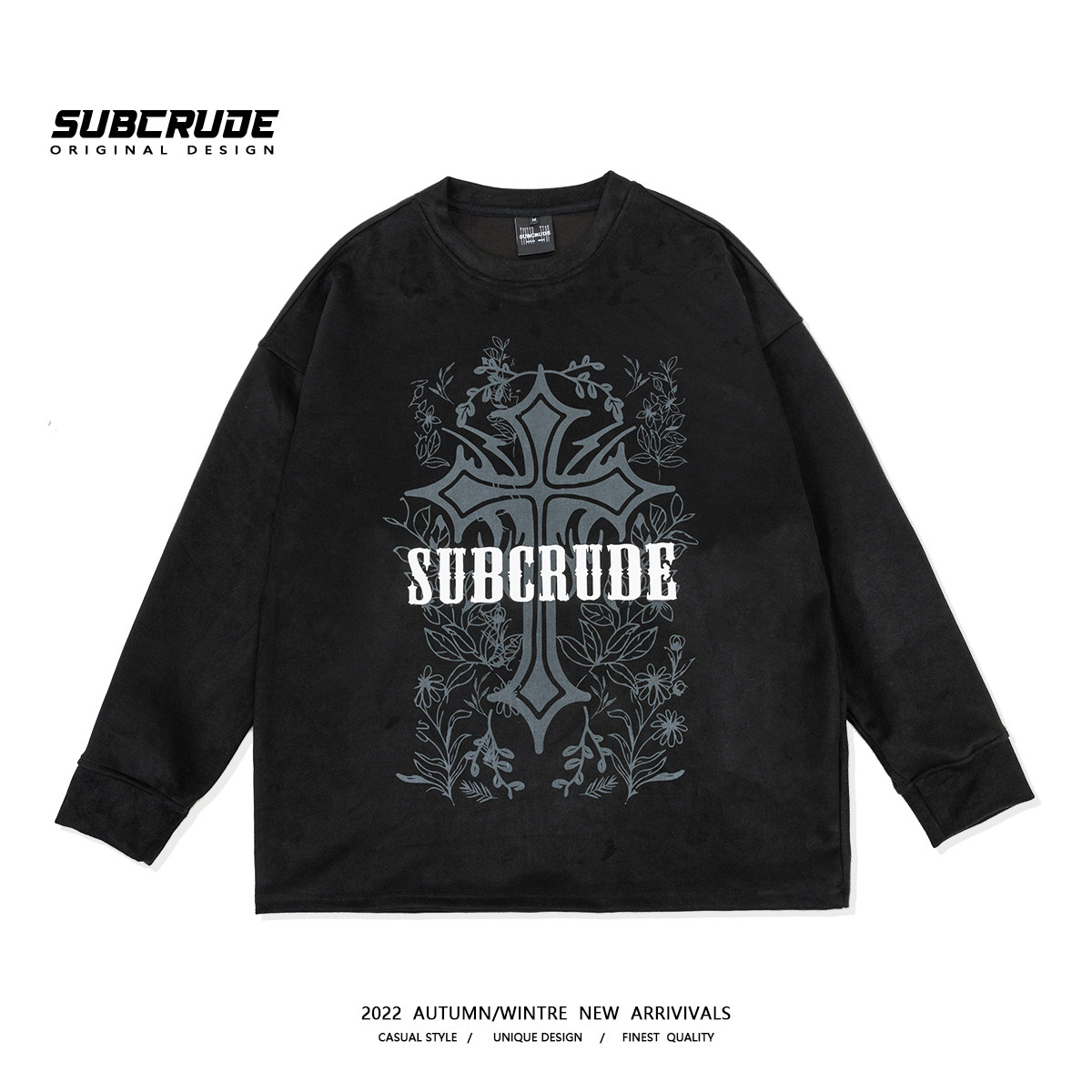 废土风长袖T恤男女款内搭宽松情侣做旧秋季麂皮绒打底衫卫衣潮牌