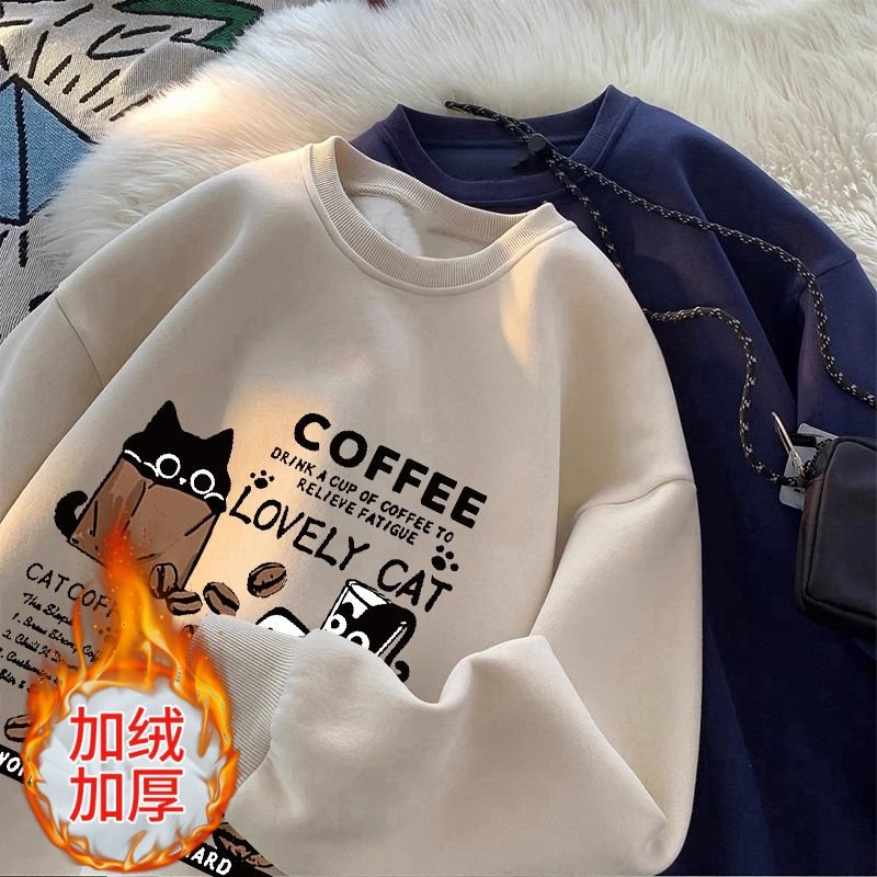 卫衣男女款春秋爆款宽松上衣美式卡通印花秋冬无帽圆领长袖t恤衫