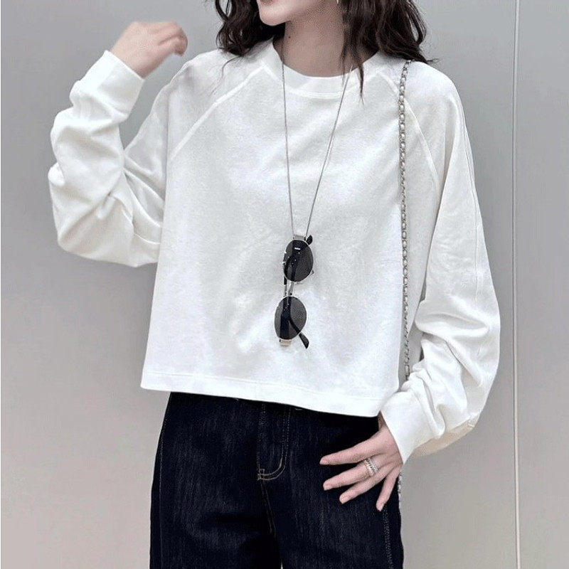 2025新款长袖T恤女款宽松百搭德绒白色上衣春秋冬卫衣内搭打底衫