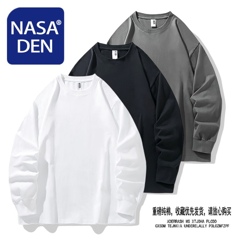 NASA联名美式纯棉长袖T恤男女款休闲宽松重磅上衣内搭打底衫卫衣
