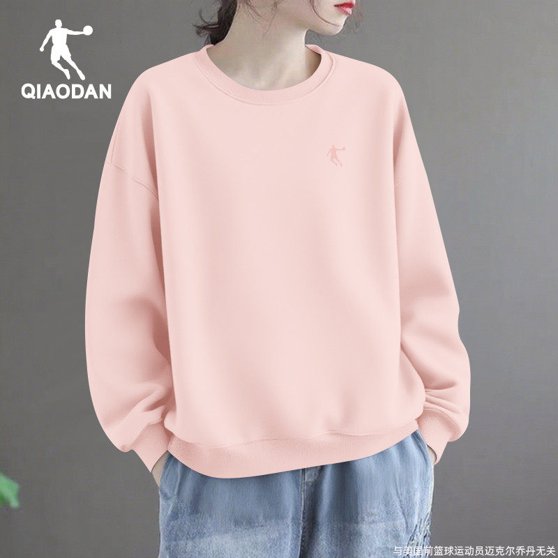 乔丹纯色卫衣女款2025秋冬季新款长袖T恤宽松上衣圆领百搭套头衫