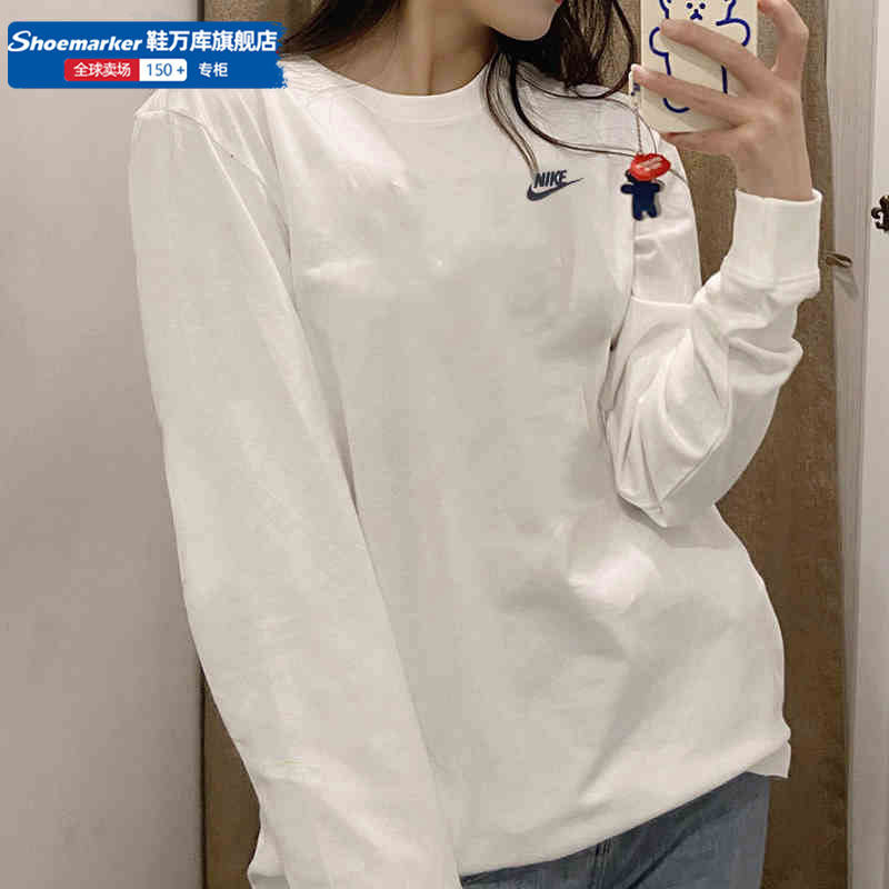 Nike耐克卫衣女款长袖套头衫纯棉白色圆领宽松运动T恤AR5194-100
