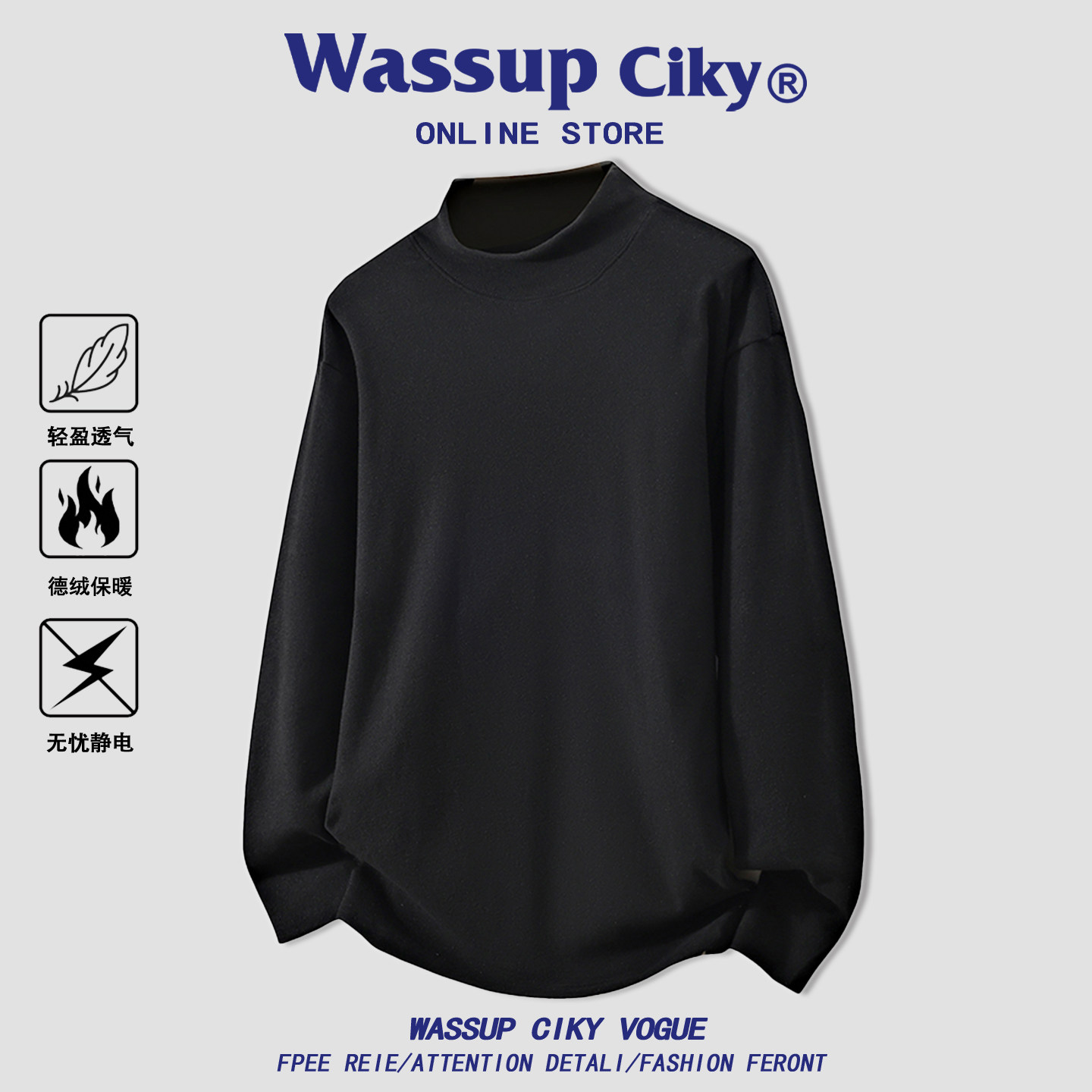 WASSUP长袖德绒打底衫卫衣男女款秋冬季宽松百搭休闲保暖内搭T恤