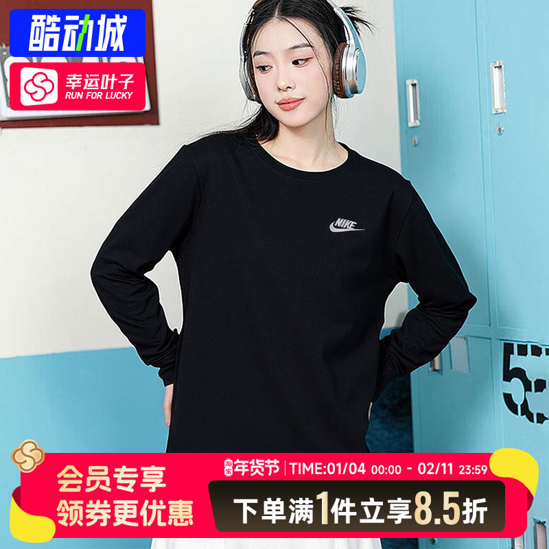 耐克女款卫衣新款冬季宽松上衣休闲装黑色女士长袖T恤圆领套头衫